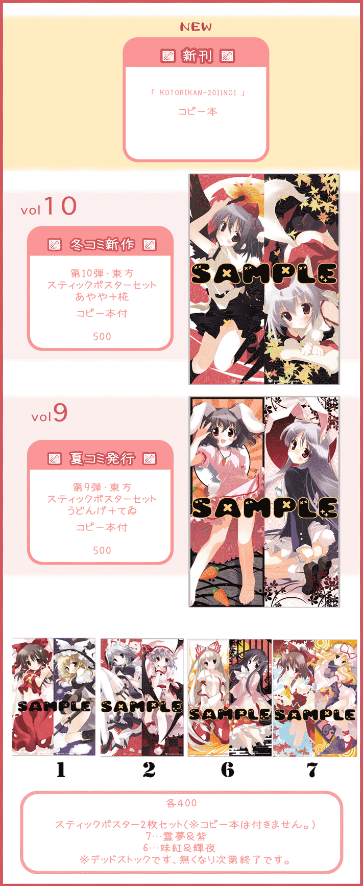 本を落としてしまいましい新作はスティックポスターセット12(摩理沙&アリス)のみになります。